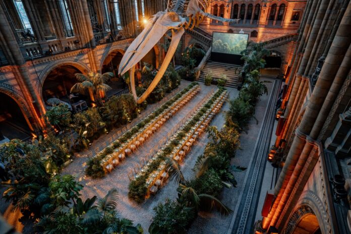 The immersive rainforest experience created by Party Planners, renowned as one of the world’s most celebrated event planning and design agencies and regularly trusted to manage events for the royal family, transformed the Museum’s iconic Hintze Hall with lush foliage and atmospheric design. Every element, from the sustainably sourced plants to the eco-conscious catering, was meticulously considered to reflect the evening’s environmental message.